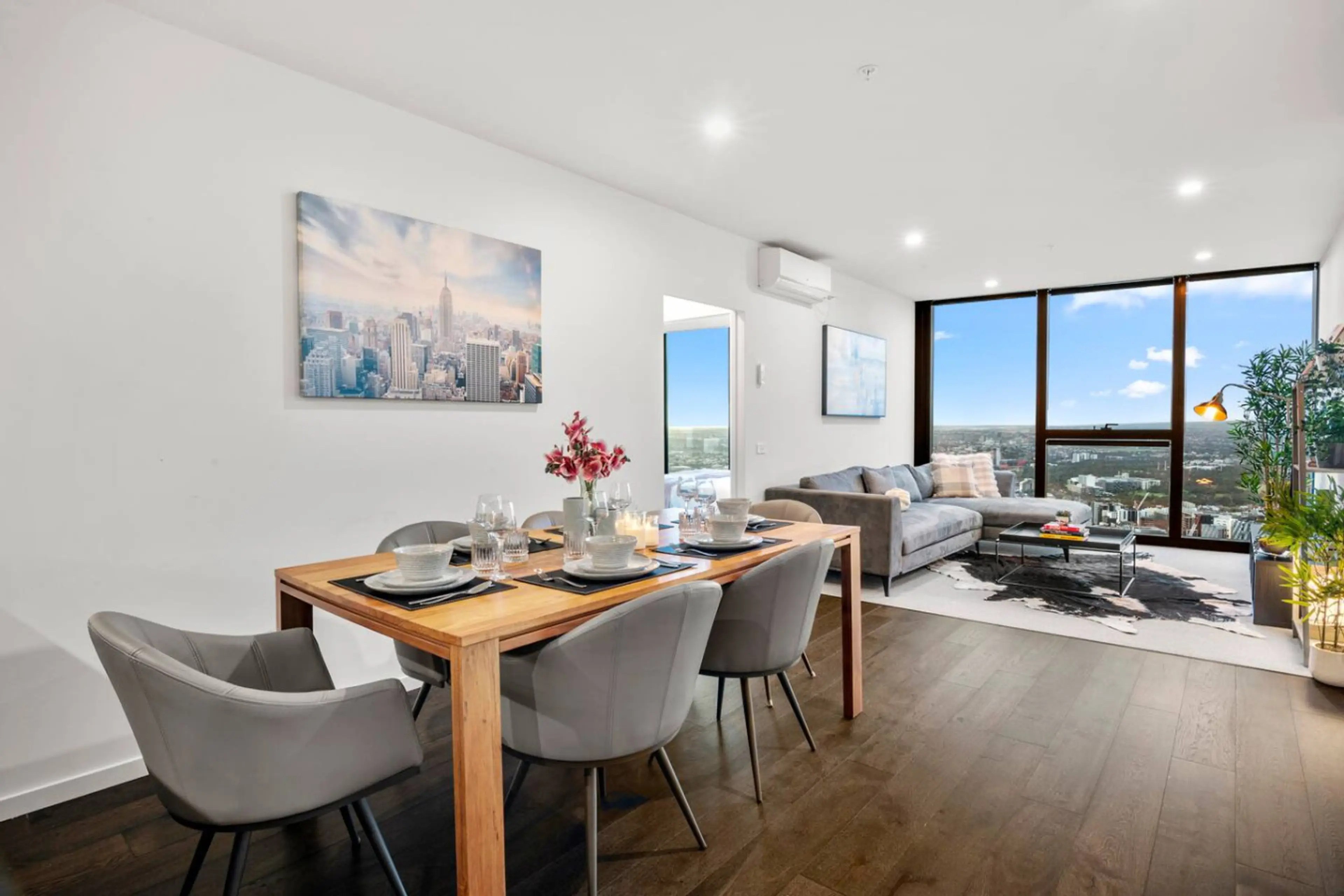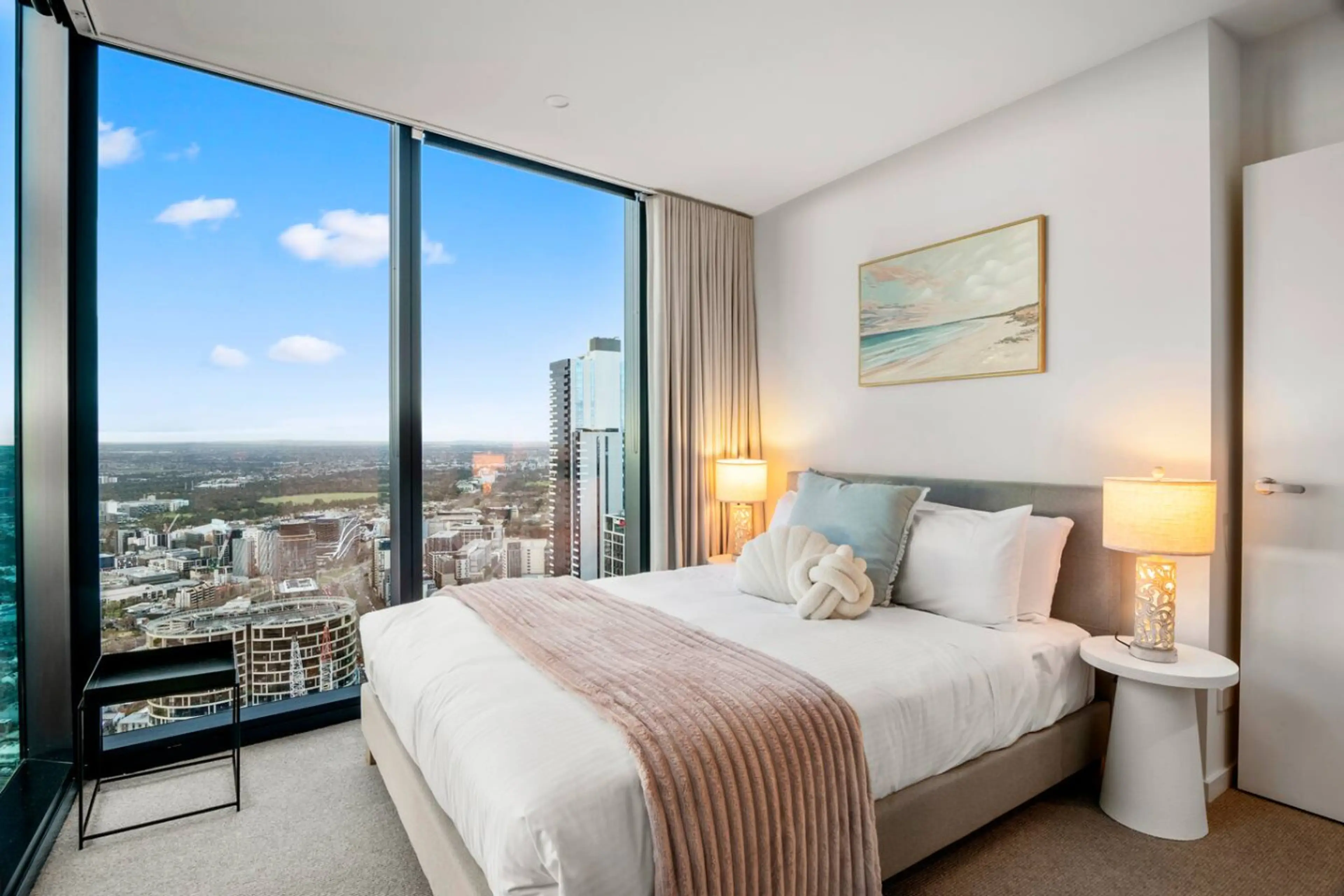 Rising high 61 floors high above the city this new 3bedroom apartment offers a stay unlike any other. With sweeping skyline views that stretch as far as the eye can see, you’ll experience Melbourne from a whole new perspective. Stylish NYC-inspired interiors comfortably accommodate up to 6 guests...